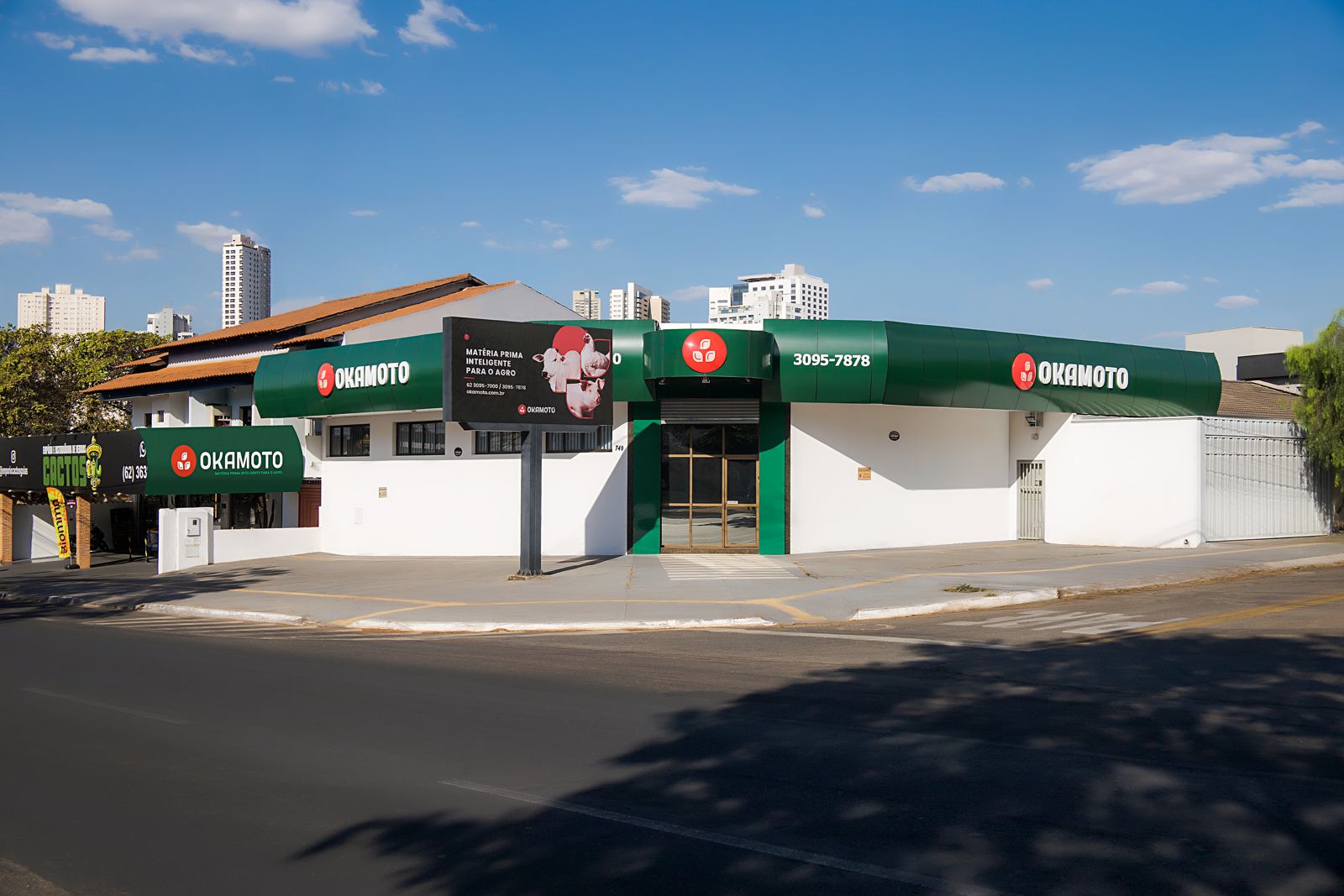 A Okamoto Loja conta com unidade física em Goiânia, oferecendo acesso rápido e direto às matérias-primas e insumos para nutrição animal, com estoque disponível para atendimento presencial e envio conforme a necessidade de cada cliente. A Okamoto Loja amplia nossa capacidade de abastecimento regional com agilidade, proximidade e suporte comercial, oferecendo soluções práticas para produtores, fábricas de ração e parceiros que dependem de disponibilidade imediata e atendimento confiável no dia a dia.